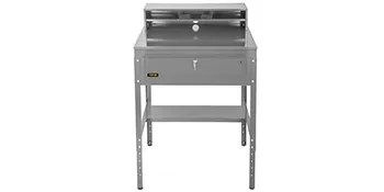 This shop desk pigeonhole is made of a sturdy iron frame with a gray powder coat finish. There is a reinforced lower storage rack, tough enough to bear heavy and oversized equipment.