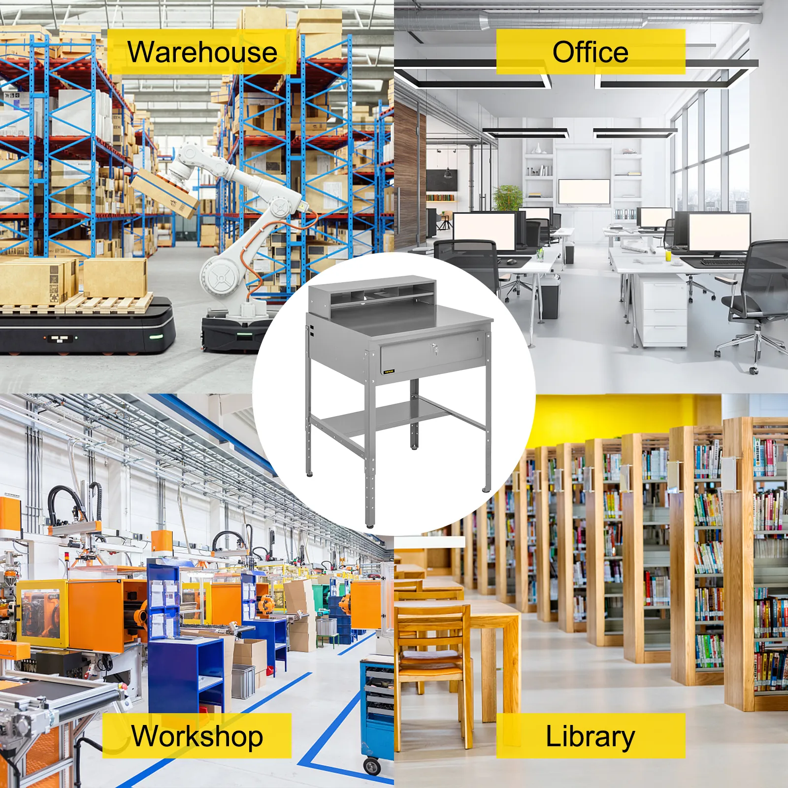 • Wide Application: This shop desk flat is constructed with a heavy-duty metal structure, ensuring years of reliable service in harsh working conditions. Our shop desk with compartment is suitable for warehouse, shipping, distribution, and other related applications.