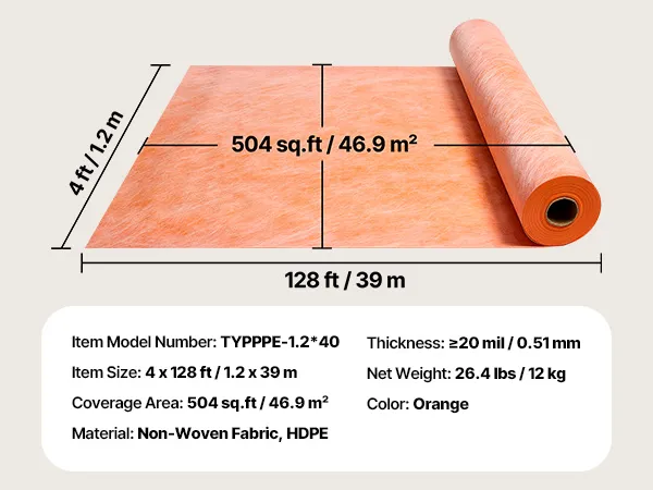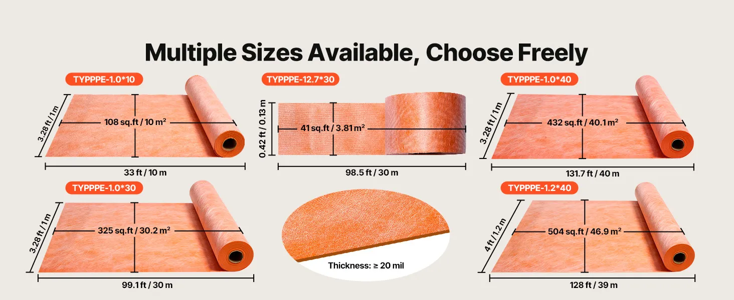 VEVOR Waterproof Membrane for Shower, 1.2 x 40 m 46.45 m² Waterproofing Tile Membrane, 0.5mm Thickness Polyethylene Fabric Roll, Easy to Cut for Bathroom, Kitchen, Sauna, Walls, Underlayment
