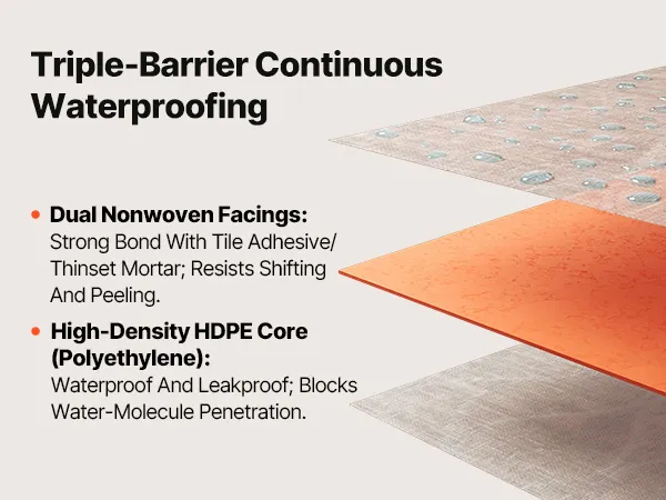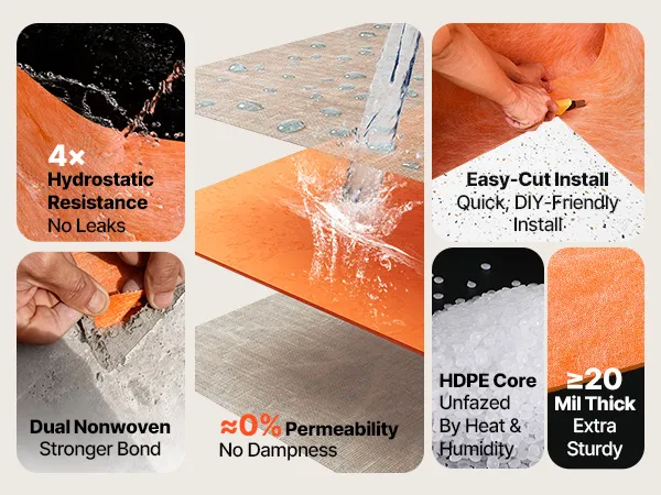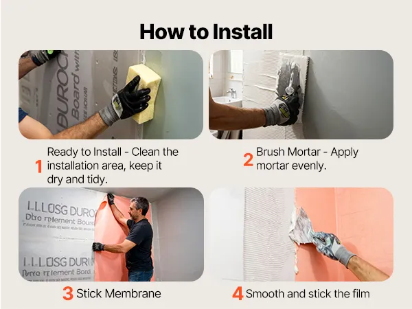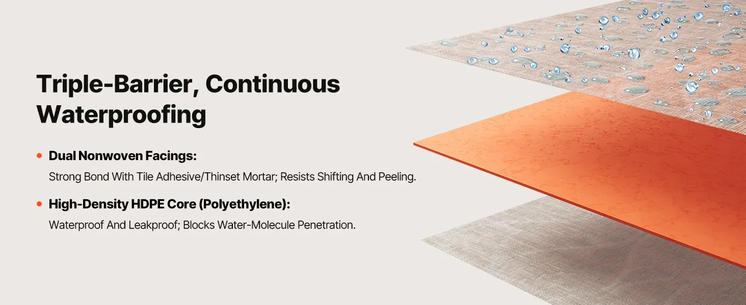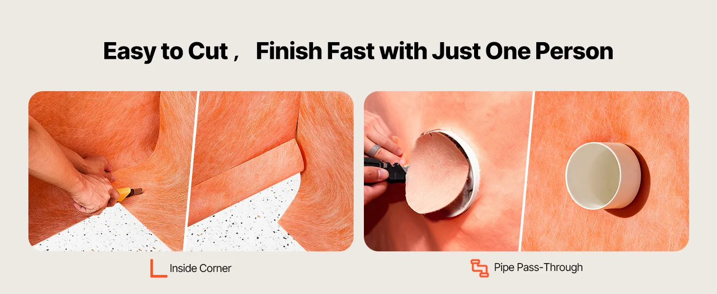 Easy to Cut and Apply: The tile membrane can be quickly trimmed with scissors or a utility knife. Flexible enough to fit wall folds and pipe penetrations, reducing wrinkles and gaps, lowering leak risks, and enabling faster, cleaner installation