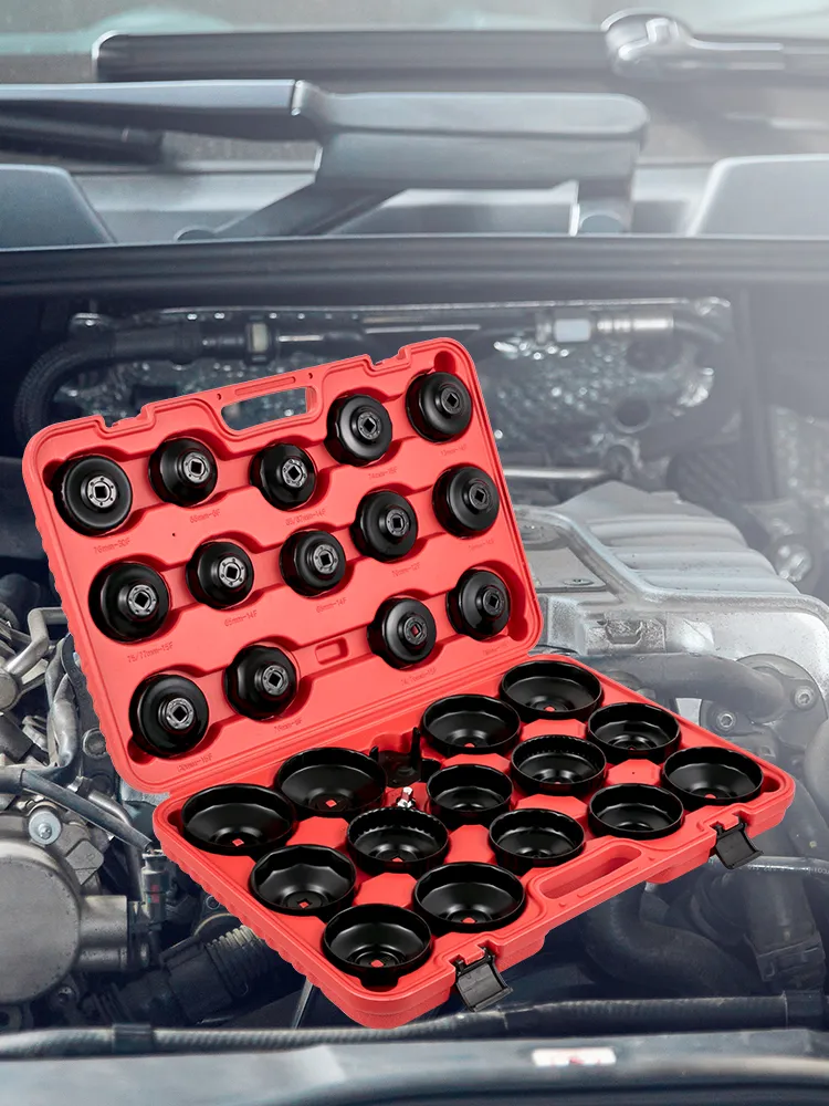 This oil filter socket set is the best solution for hassle-free oil changes. This set includes 30 pieces. You get a wide range of sizes to make your oil adjustments easier and faster. Each socket is made from high-quality steel. It ensures durability and strength. The low-profile design allows for easy access, even in tight spaces. This set covers car, truck, or other vehicle maintenance. Our set boasts robust construction and is available in a variety of sizes. They ensure compatibility with most vehicles. This setup is ideal for home mechanics and professionals. The low-profile design ensures these tools' durability for many years. We have included various sizes. You can easily reach those hard-to-access filters thanks to the variety of sizes available. Your set is perfect for both home mechanics and professionals. The high-quality steel construction ensures long-lasting durability. With these dimensions, you can find the right tool for any job. A case keeps everything organized and easy to find.