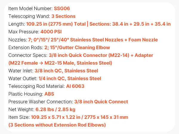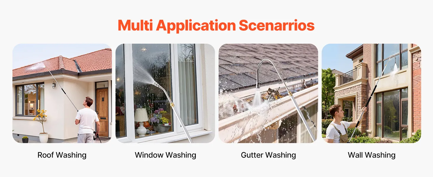As a dependable telescopic pressure washer wand, it is suitable for a wide range of overhead cleaning tasks, including roofs, windows, gutters, and walls, meeting various household and outdoor cleaning needs.