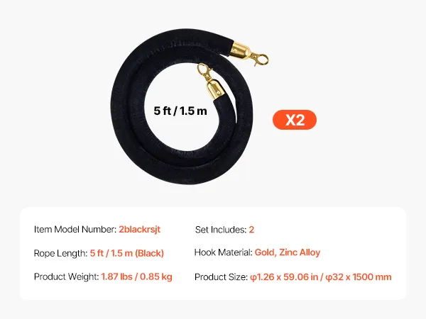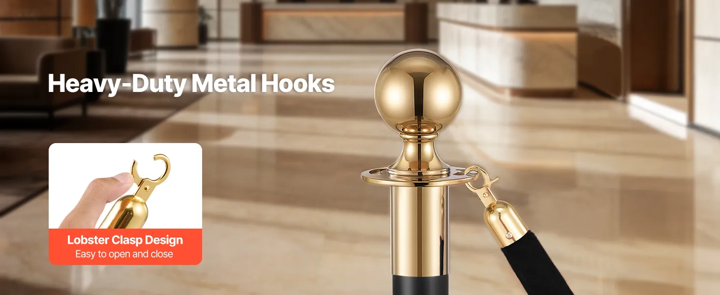 Heavy-Duty Metal Hooks: Each end of the velvet stanchion rope is fitted with a polished metal lobster clasp that opens and closes smoothly while locking firmly onto your stanchion rings