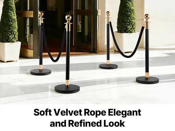 Premium Velvet Finish: This velvet rope features a soft, plush surface with a subtle sheen that looks elegant under both natural and indoor lighting. It’s ideal for creating a premium, VIP-style entrance