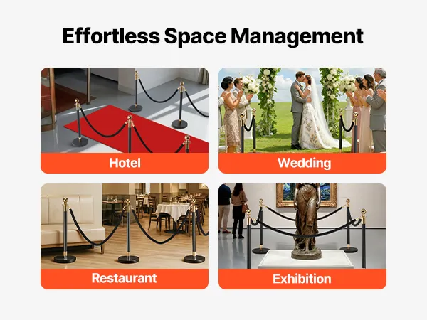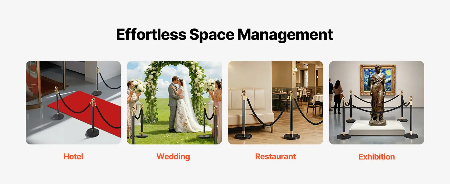 Versatile for Events: Whether you’re setting up a red carpet entrance, organizing queues in a theater or bank, or adding a touch of class to a hotel lobby, this velvet rope stanchion helps define spaces and guide guests with style