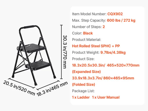 Full-Height 2-Step Elevation: 18.3 x 20.5 x 30.3 in expanded size delivers tall, stable elevation coverage for cupboard, attic and décor tasks without unsafe tiptoe stretching and 33.9 x 18.3 x 3.7 in folded size for convenient storage and space-saving