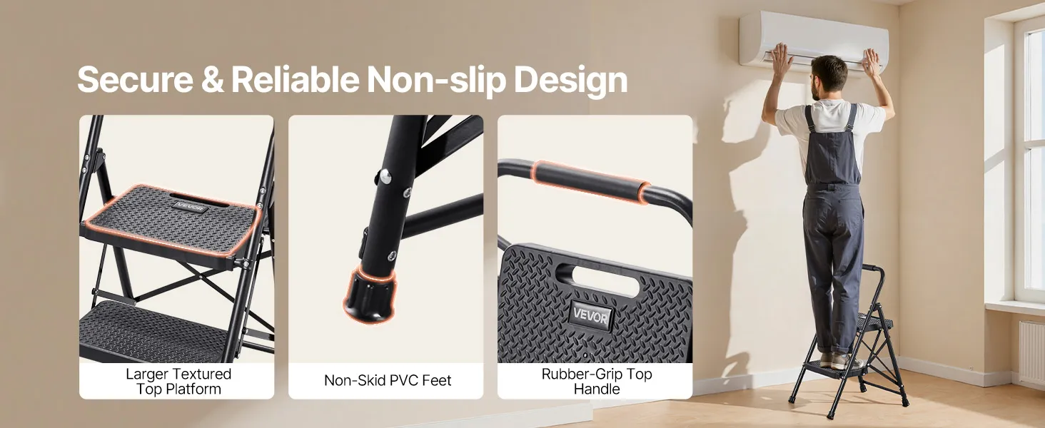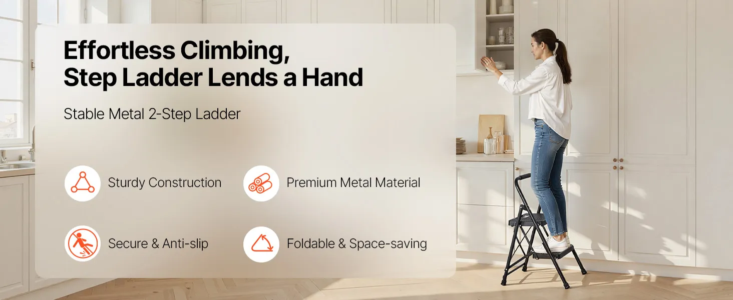 Suitable for home repairs, cleaning, organizing, this compact step ladder provides stable, slip-resistant support, helping you easily reach high areas.