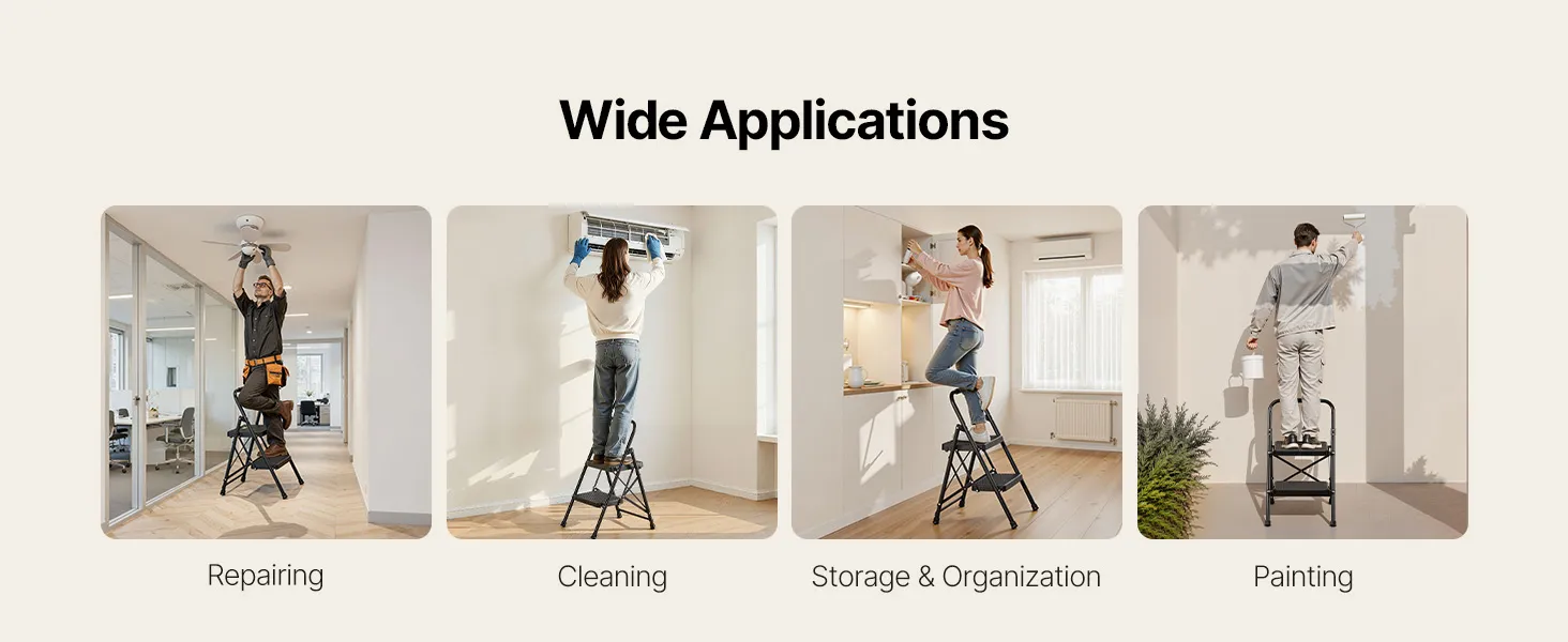 Versatile Application: Ideal for cleaning, painting, or decorating. The step stool ladder helps you easily reach tricky spots and simplifies your DIY or household chores, suitable for indoor and outdoor areas
