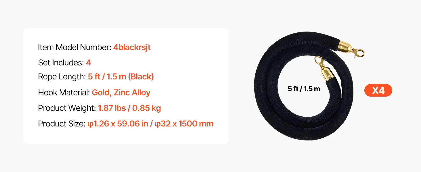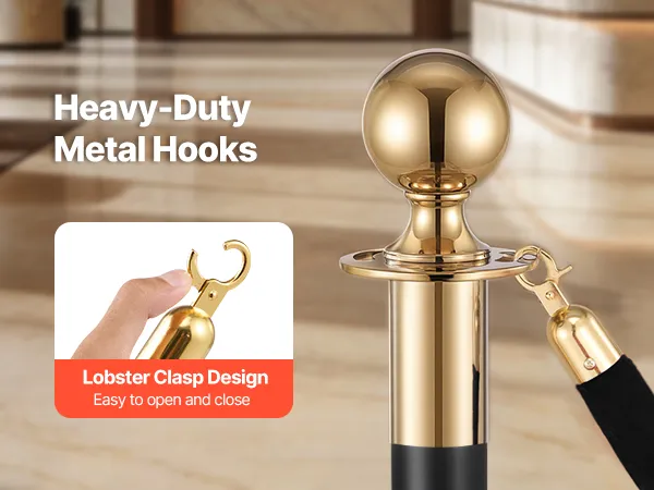 Heavy-Duty Metal Hooks: Each end of the velvet stanchion rope is fitted with a polished metal lobster clasp that opens and closes smoothly while locking firmly onto your stanchion rings