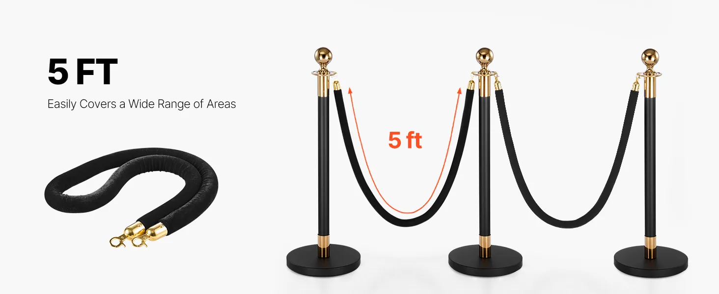 Versatile for Events: Whether you’re setting up a red carpet entrance, organizing queues in a theater or bank, or adding a touch of class to a hotel lobby, this velvet rope stanchion helps define spaces and guide guests with style