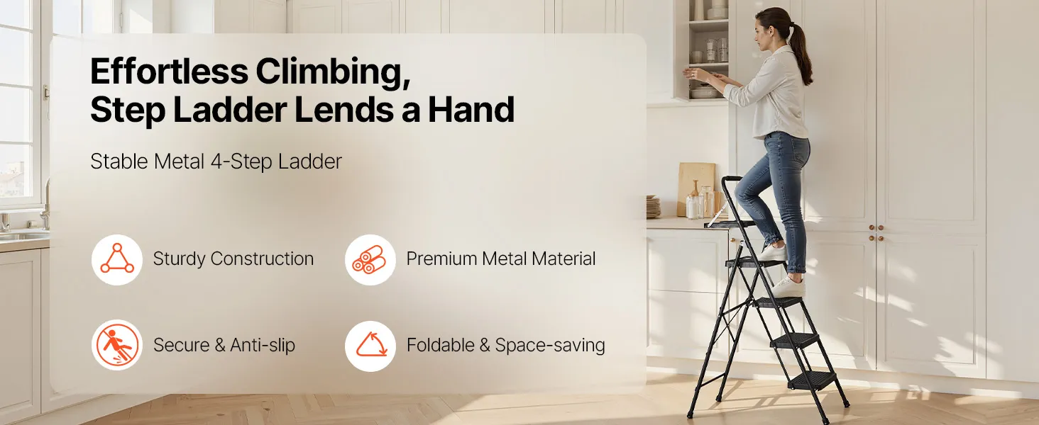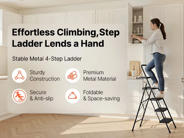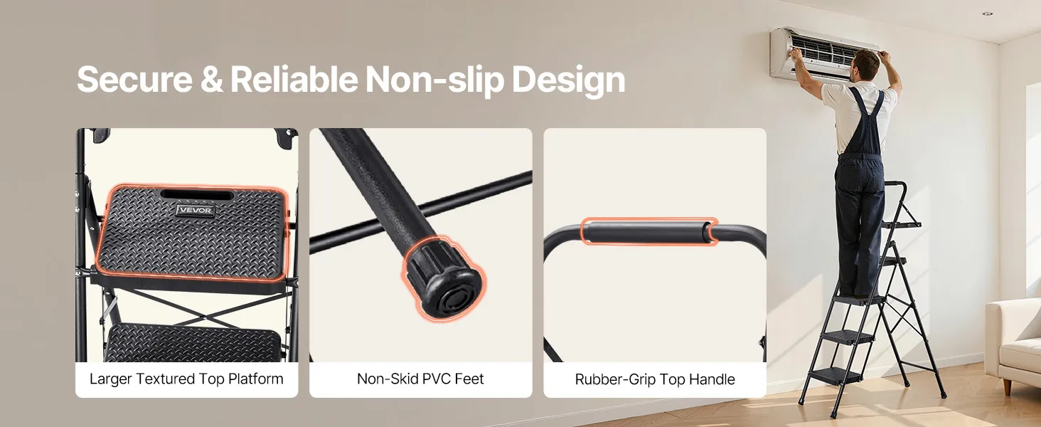 Suitable for home repairs, cleaning, organizing, this compact step ladder provides stable, slip-resistant support, helping you easily reach high areas.