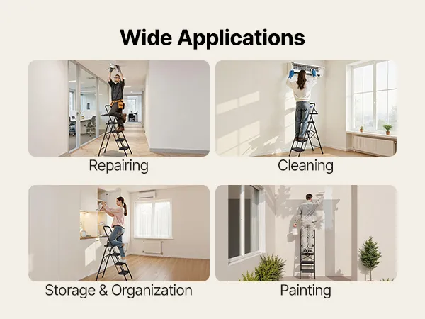 Versatile Application: Ideal for cleaning, painting, or decorating. The step stool ladder helps you easily reach tricky spots and simplifies your DIY or household chores, suitable for indoor and outdoor areas