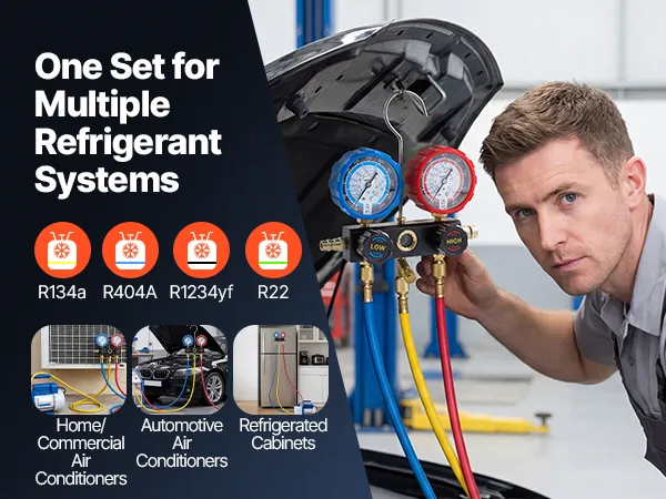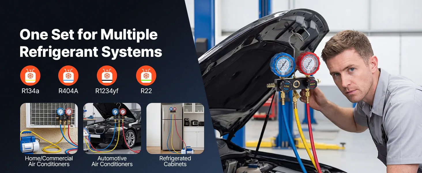 Works with Four Refrigerants: This 3-way AC gauge accurately measures pressure for R134a, R404A, R1234yf, and R22. It is a versatile solution for automotive AC systems, household refrigerators, and small-scale refrigeration equipment