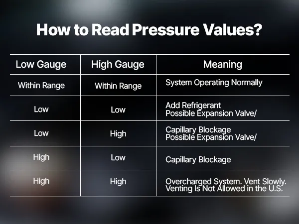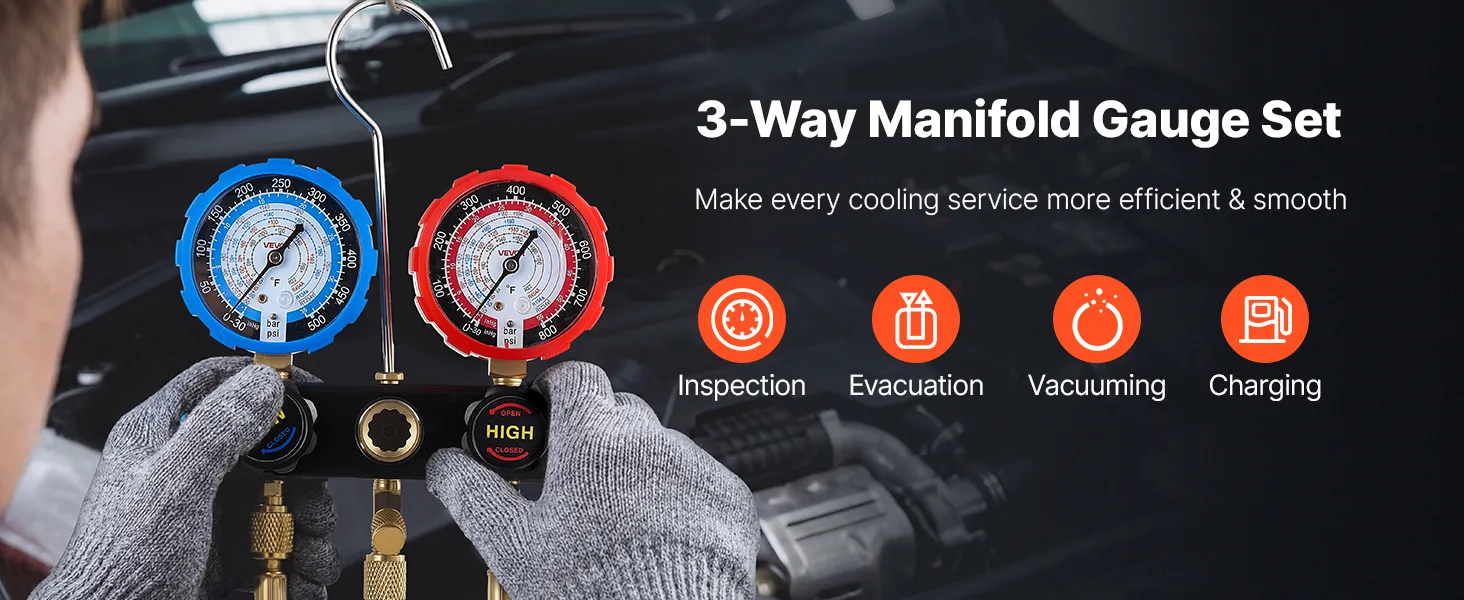 You can connect the high side, low side, and service port at the same time through our manifold gauge set. By comparing pressure and vacuum readings in real time, it helps quickly identify leaks, blockages, or compressor issues, all within one integrated diagnostic kit.