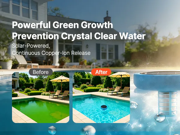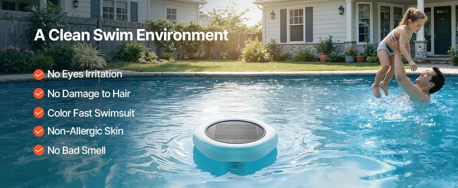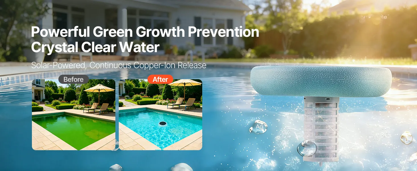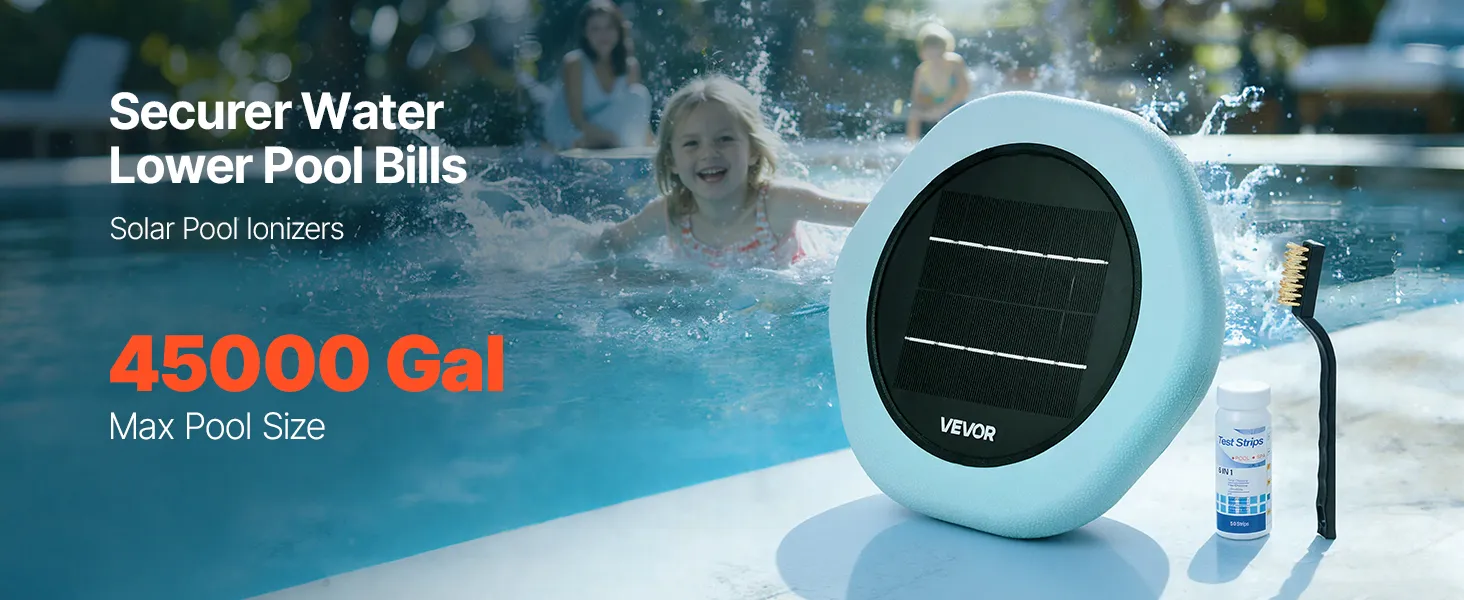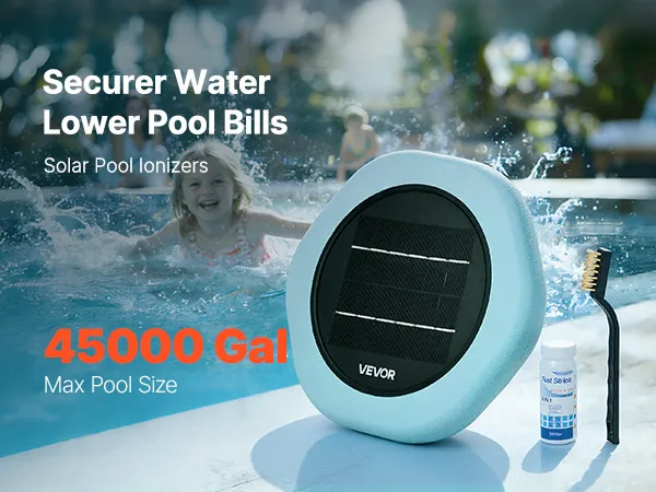 This solar pool ionizer delivers efficient, stable water purification for large swimming pools. It features a sturdy leak-proof design, an IPX8 waterproof rating, and a durable solar panel. It helps you minimize the time and effort spent on daily cleaning while ensuring your pool stays clean.
