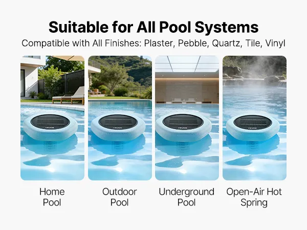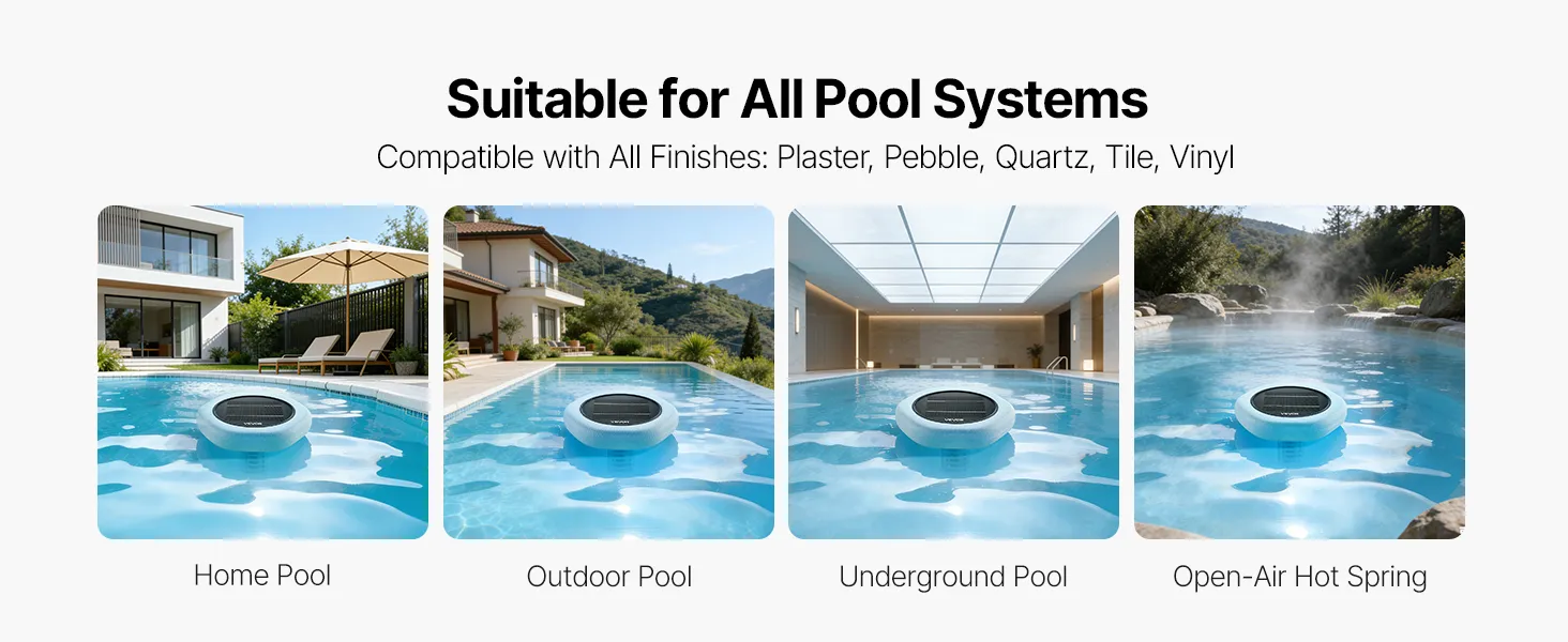 No tools or external power needed. Simply let the solar copper pool ionizer float in your pool, and it runs on solar energy. It works with all pool types (saltwater and chlorine) and is compatible with all pool surface materials.