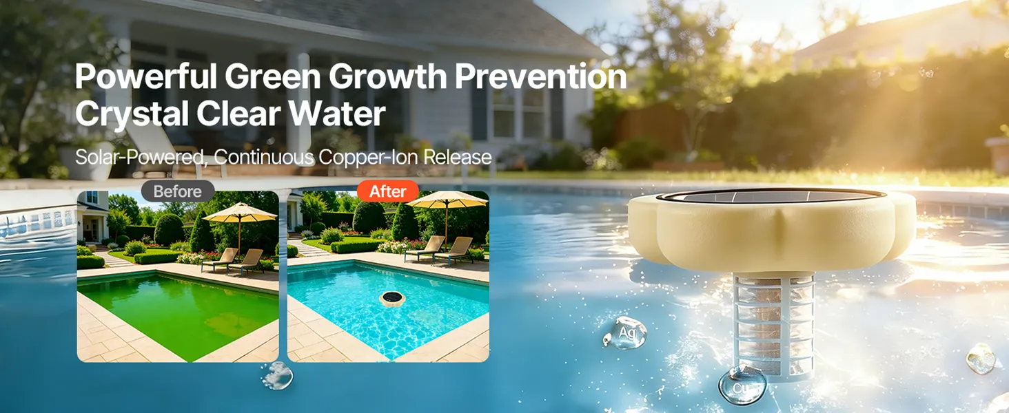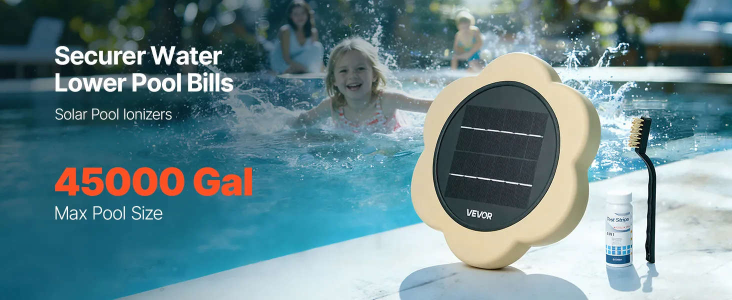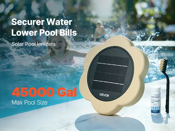 This solar pool ionizer delivers efficient, stable water purification for large swimming pools. It features a sturdy leak-proof design, an IPX8 waterproof rating, and a durable solar panel. It helps you minimize the time and effort spent on daily cleaning while ensuring your pool stays clean.