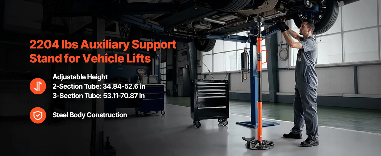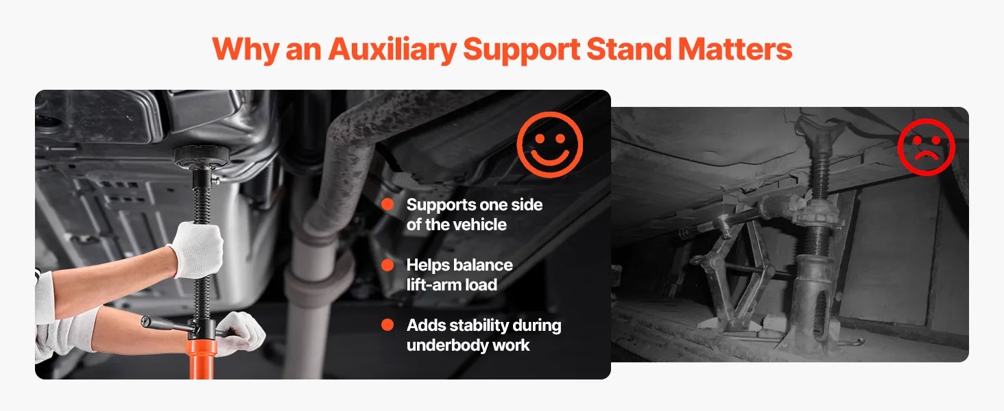 Added Stability Under Lifted Vehicles: This underhoist support stand supports up to 2204 lbs and provides reliable assistance under one side of a lifted vehicle. When paired with a lift, it helps reduce tilt, creating a safer setup for underbody service