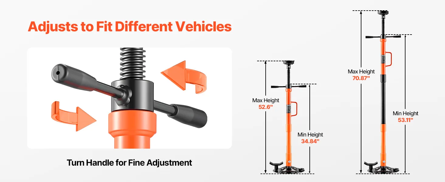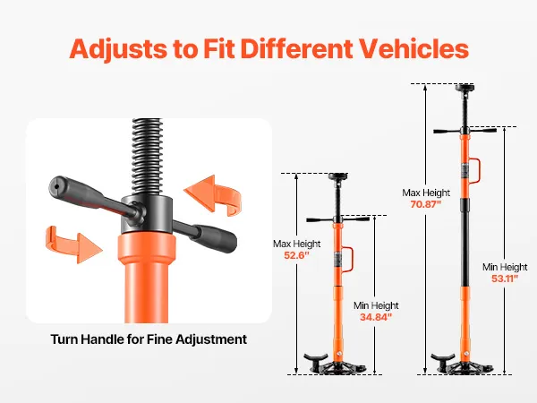 Adjustable Height for Repair Tasks: The under hoist jack stand features an adjustable height. A built-in turning handle allows fine adjustment, ensuring a precise and stable setup for various vehicle clearances and repair needs