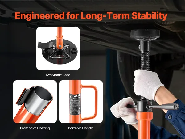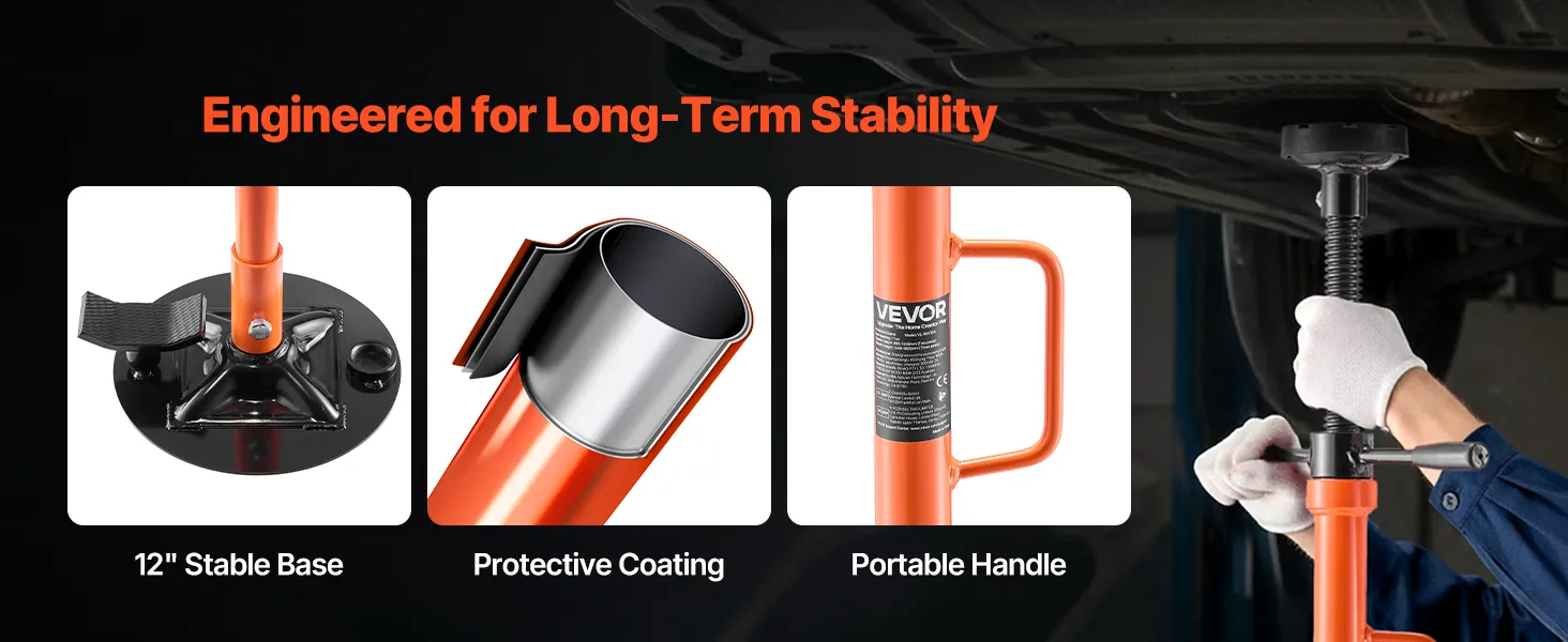 Solid Base for Reliable Support: Crafted with premium steel, a smooth screw rod, and a large, stable base, our under hoist stand evenly distributes loads for reliable support. A protective coating enhances long-term durability, even in busy workshops