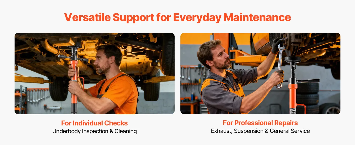 Daily Maintenance Use: Ideal for underbody inspections, suspension service, wheel work, and lift-assisted repairs, this lift jack stand is a practical addition to maintenance tasks. It's well-suited for repair shops, service stations, and personal garages