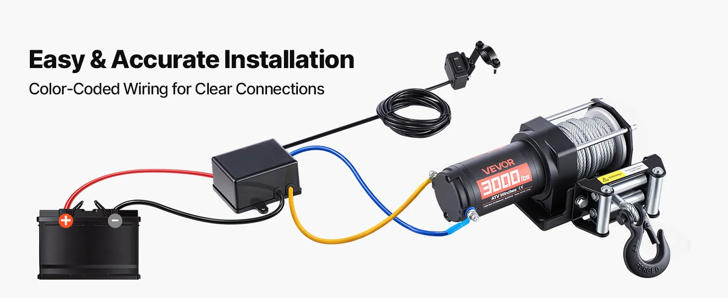 Universal Fit for ATV: Come with a standard fairlead and mounting bracket fits for various ATV. Color-coded wiring helps simplify installation, making this winch suitable for first-time users (Note: some vehicles may require minor modification)