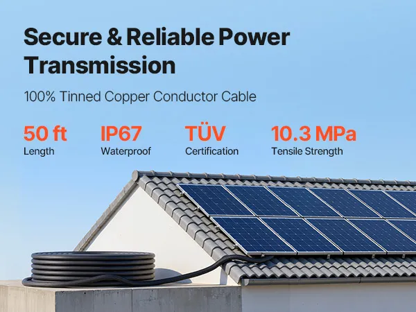 Reliable 10AWG Cable: Tested to TÜV standard, this solar panel cable meets international security standards. It is ideal for high-power solar systems, with a 50 ft (15.24 m) length for flexible DIY installations