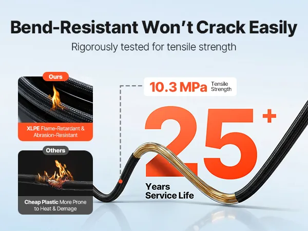 This solar power extension cord features excellent waterproof performance and strong resistance to heat and cold from -40°F to 194°F, allowing stable operation in rain and snow while reducing the risk of aging, leakage, or electrical hazards.