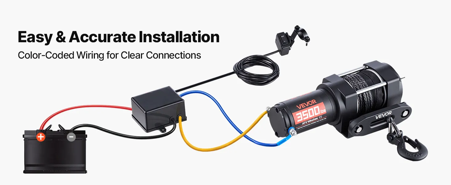 Universal Fit for ATV: Come with a standard fairlead and mounting bracket fits for many ATV. Color-coded wiring helps simplify installation, making this winch suitable for first-time users (Note: some vehicles may require minor modification)