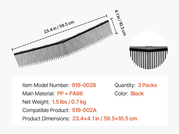 For 26" Push Lawn Sweepers: This 3-pack lawn sweeper brush replacement is designed for 26 in push lawn sweepers (Model: S19-002A). Each brush measures 23.4 × 4.1 in (59.5 × 10.5 cm), delivering a full 26 in (66 cm) sweeping width