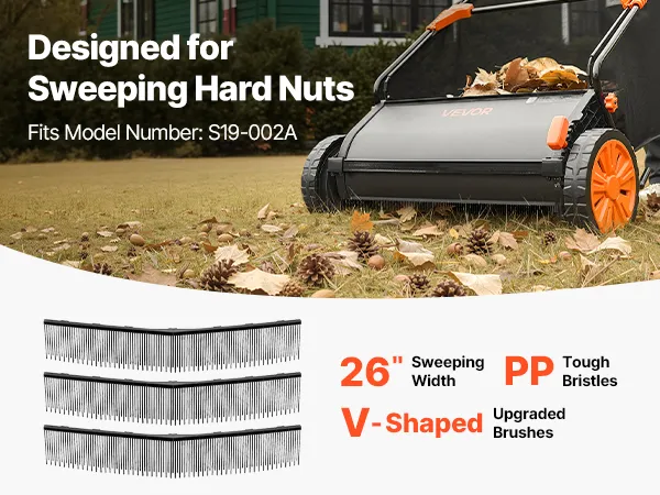 This 3-pack yard sweeper brush replacement is designed for 26 in (66 cm) push lawn sweepers, letting you collect nuts efficiently without bending over or picking them up one by one—saving time and reducing fatigue.