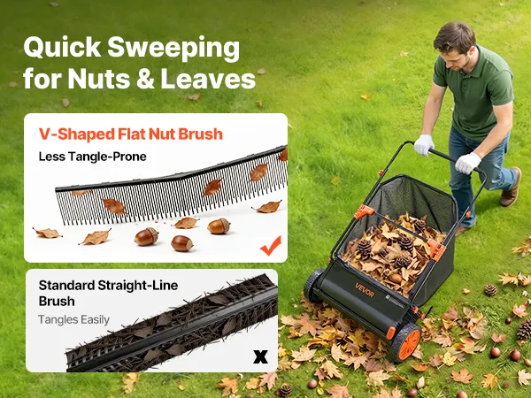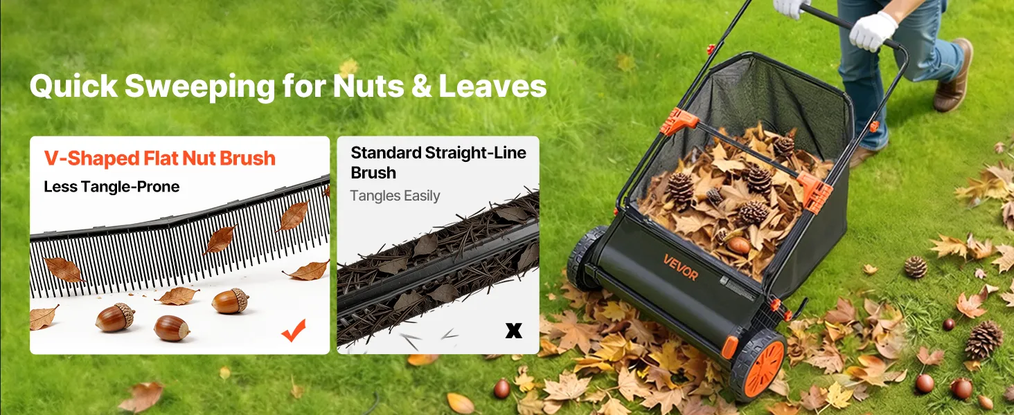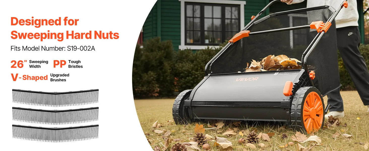 High-Efficiency V-Shaped Brush: The package includes three V-shaped leaf sweeper brushes with a concentrated structure that reaches deeper into grass for more thorough sweeping. Angled ground contact reduces resistance, allowing smoother pushing