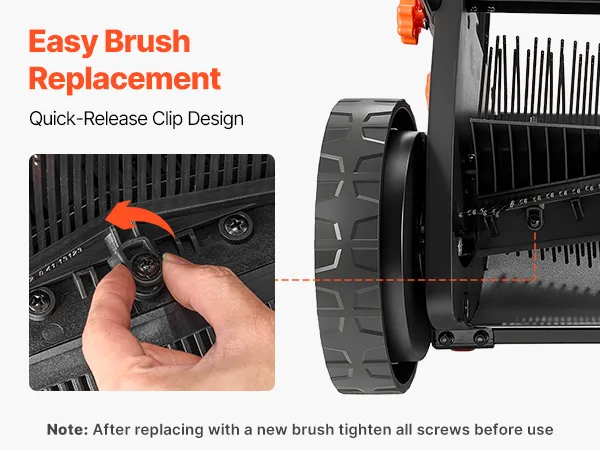 Quick & Easy Installation: The lawn sweeper brush head features a tool-free quick-release brush mounting system. Simply loosen the retaining screw, rotate the latch, and remove the old brush. Fast replacement saves time and gets your lawn sweeper back to work