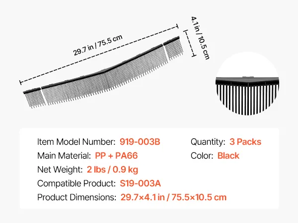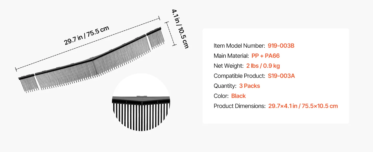 Designed for 30" Push Lawn Sweepers: This 3-pack lawn sweeper brush replacement is designed for 30 in push lawn sweepers (Model: 919-003B). Each brush measures 29.7 × 4.1 in(75.5 × 10.5 cm), delivering a full 30 in (76.2 cm) sweeping width