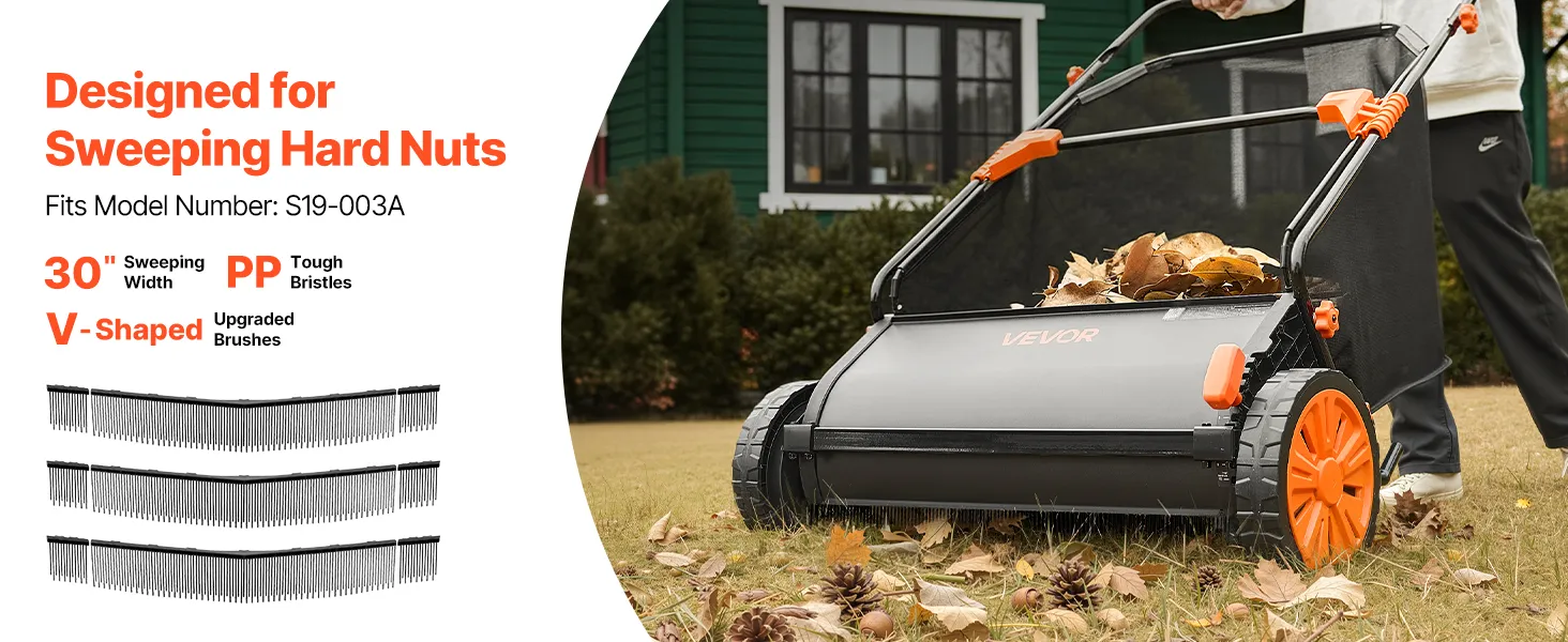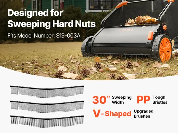 This 3-pack yard sweeper brush replacement is designed for 30 in (76.2 cm) push lawn sweepers, letting you collect nuts efficiently without bending over or picking them up one by one—saving time and reducing fatigue.