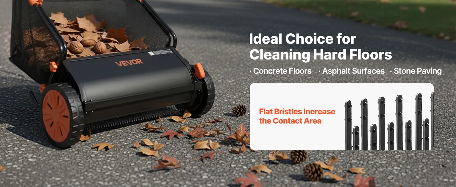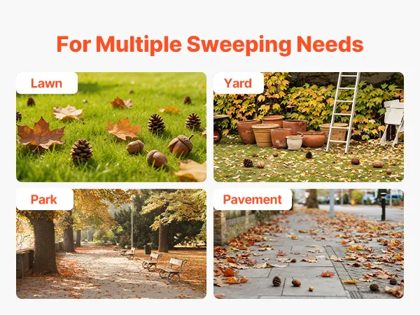 High-Efficiency V-Shaped Brush: The package includes three V-shaped leaf sweeper brushes with a concentrated structure that reaches deeper into grass for more thorough sweeping. Angled ground contact reduces resistance, allowing smoother pushing