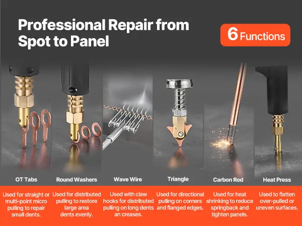 Double Efficiency: This spot welder dent repair kit is equipped with 2 welding guns, enabling the simultaneous welding of two different studs. Switch seamlessly between tools to boost productivity and handle diverse repair tasks with ease