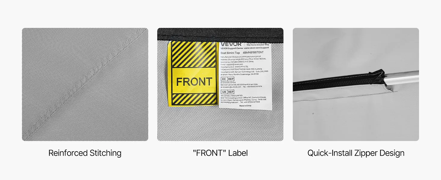 The 4 bow bimini comes with a "Front" label, making it easy to align and assemble quickly. This simple design minimizes installation difficulties and saves time.