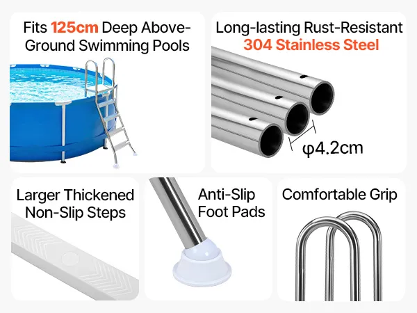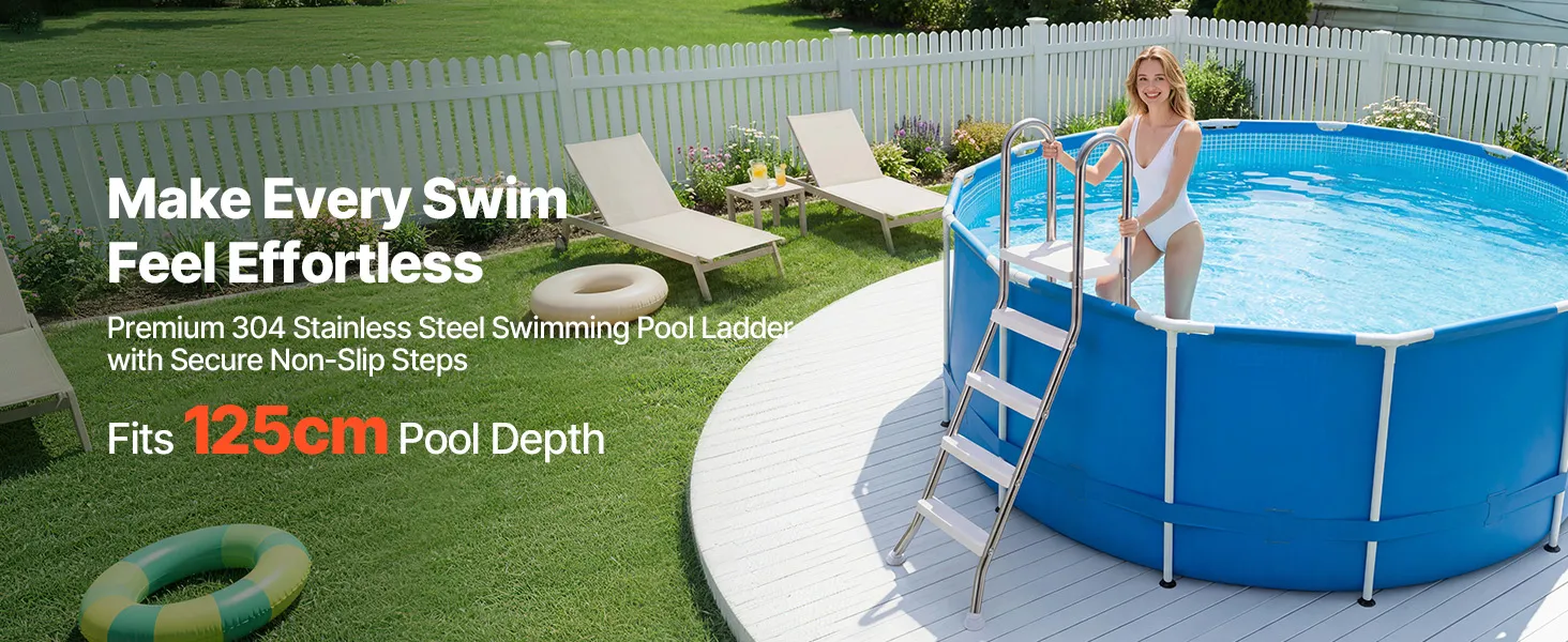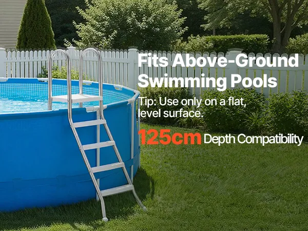 Fit Above-Ground Swimming Pools: This above ground pool ladder is compatible with 125 cm above-ground swimming pools and performs better on flat, level surfaces for enhanced stability and secure everyday use