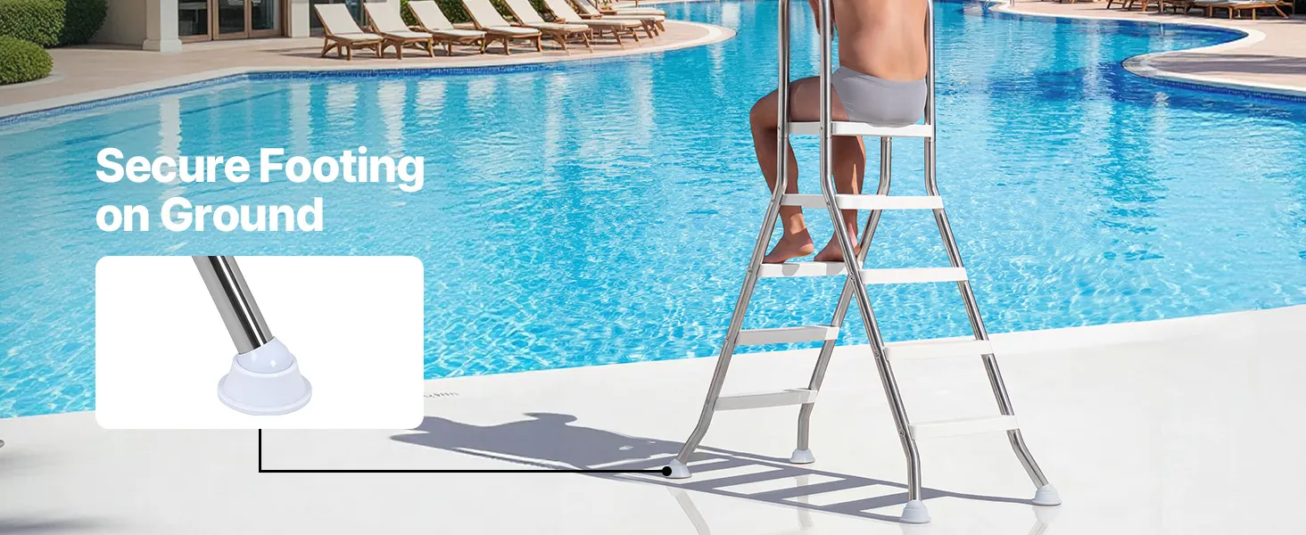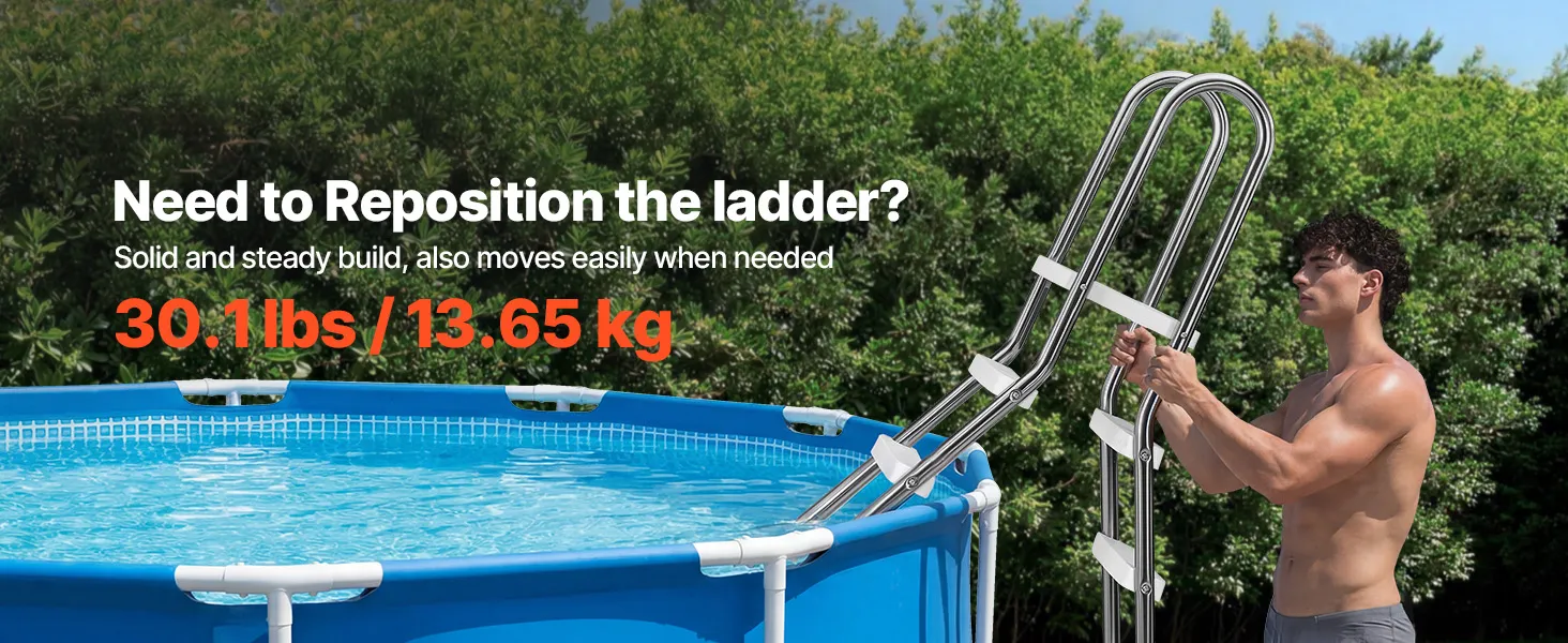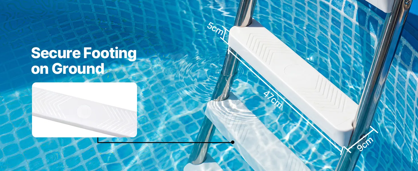 Premium Materials: Built as a premium pool ladder, it is made of 304 stainless steel and PP materials with rust- and corrosion-resistant construction. The φ4.2 cm stainless steel tubes and 47 x 9 x 5 cm thickened steps ensure long-lasting performance