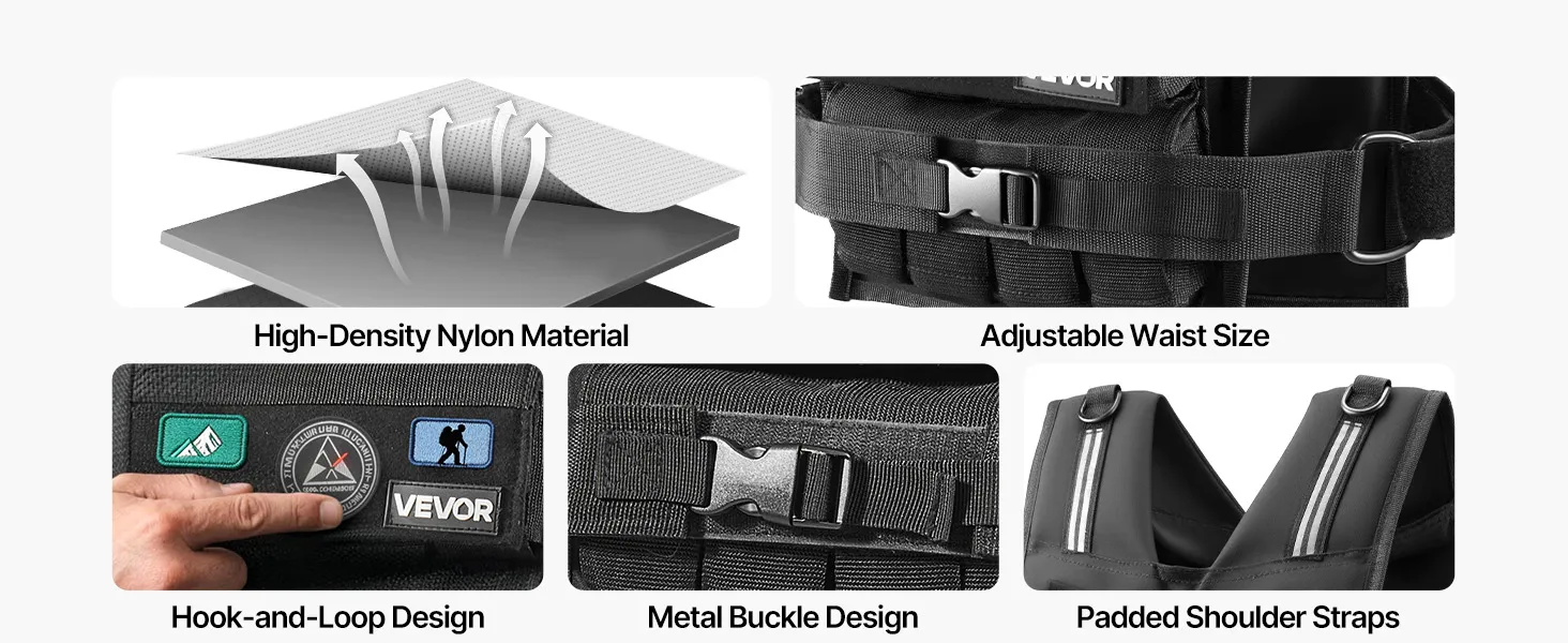 Premium Comfort Fabric: Made of 1000D nylon, it combines breathability, sweat-wicking performance, and a skin-friendly feel for lasting comfort during exercise. The vest supports hook-and-loop accessory expansion to meet personalized use needs