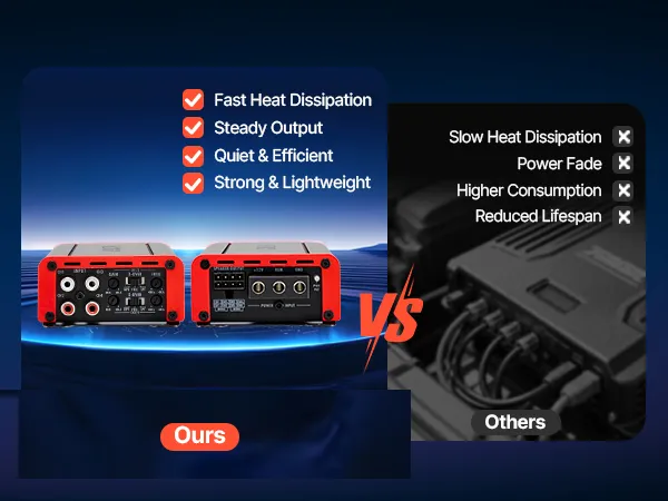 Better Heat Dissipation: The car stereo amp's aluminum alloy shell quickly dissipates heat from internal components for cooler operation and longer lifespan. The built-in fuse ensures reliable current control for dependable operation under all conditions