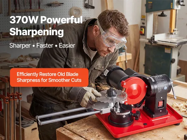 Efficient, Powerful Sharpening: Powered by a 370W strong motor running at 2890RPM high speed, this VEVOR circular saw blade sharpener grinder features a 125mm grinding wheel to efficiently restore dull and worn blades for sharper and more precise cuts