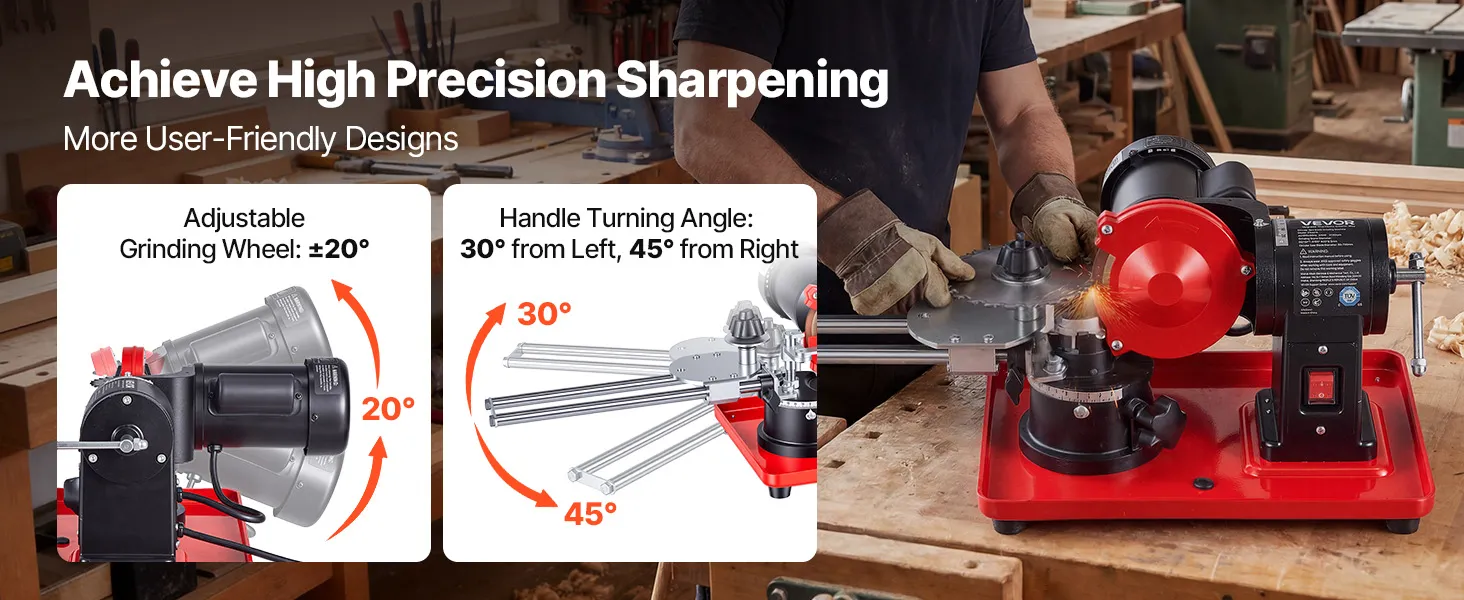 Use this VEVOR circular saw blade sharpener to restore dull blades to a sharp cutting edge, improve cutting accuracy, and extend your blade life.