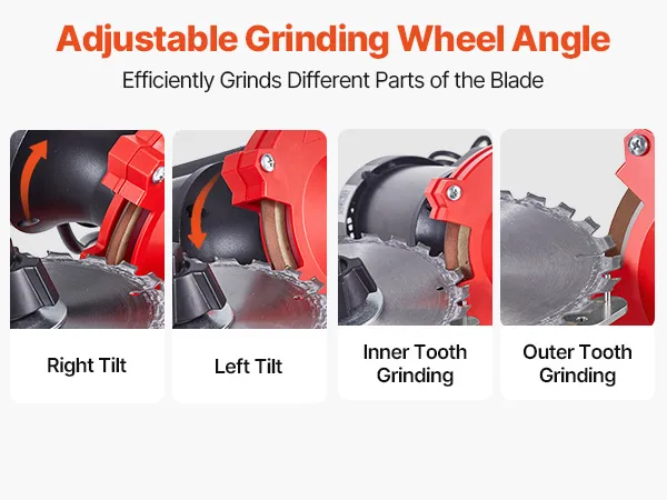 Adjustable grinding wheel efficiently grinds both inner and outer teeth, ensuring every edge is evenly sharpened for optimal cutting performance.
