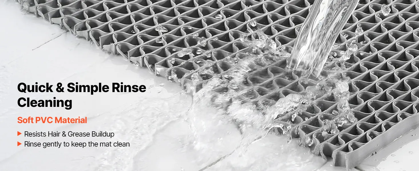 Effortless to Clean & Maintain: The soft PVC surface of this wet area drainage mat resists hair and grease buildup, allowing you to simply rinse or wipe it clean. It quickly restores freshness and saves time and effort on daily maintenance
