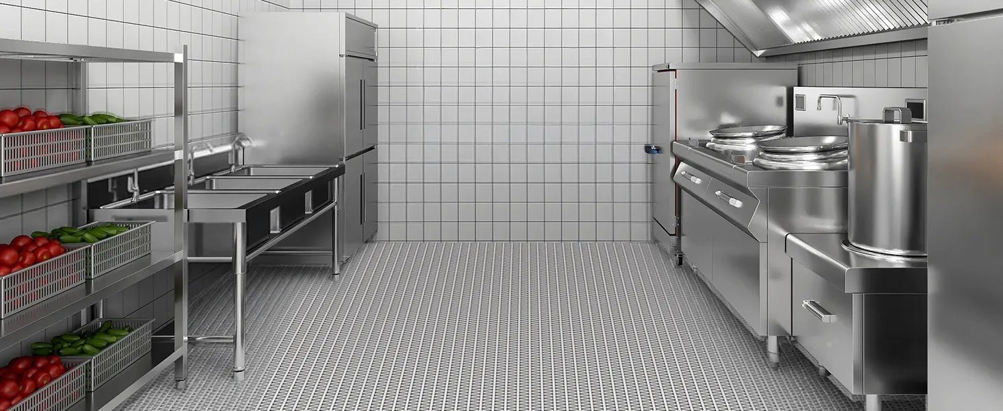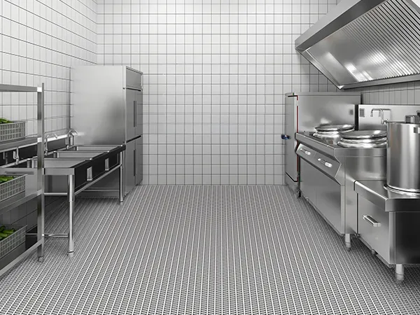 This one-piece drainage floor mat lays flat with no seams or gaps, delivering a clean look and an even surface.