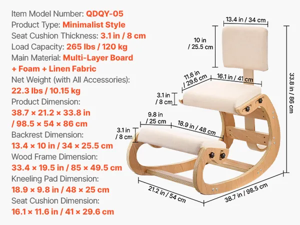 VEVOR Ergonomic Kneeling Chair, Wooden Posture Knee Chair with Adjustable Thick Foam Cushions, Backrest and Wood Frame, Adjustable Height, Relief for Neck or Back Pain for Home, Office or Meditation