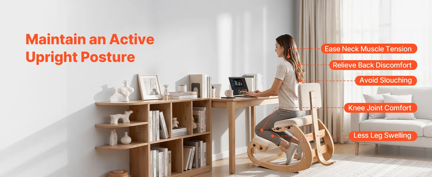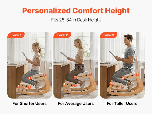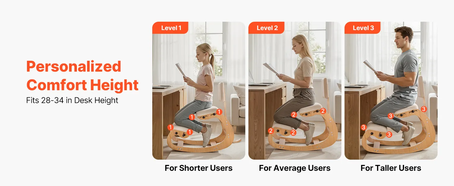 Adjustable Design: Adjust our kneeling desk chair with side screws to fit different heights and desk setups, rocking base helps reduce stiff sitting so you can read, think, or work with more ease