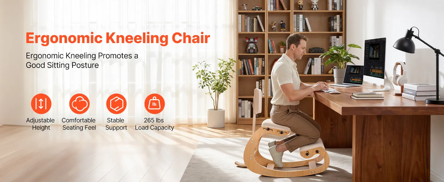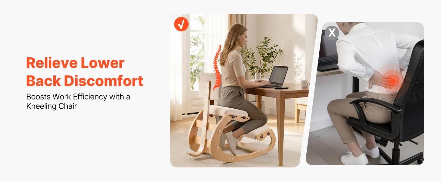 Improve Posture: Unlike traditional chairs, this ergonomic kneeling chair uses a kneeling design to help align your back, shoulders, and neck, ease sciatic and lower back pain, and reduce slouching for better focus and efficiency